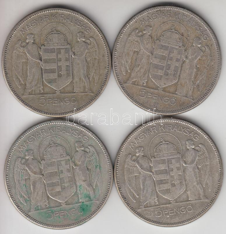 1930. 5P Ag "Horthy-jobbra" (4x) T:3 https://www.darabanth.com/de/187-Fernauktion/187.0/Numismatik/Ungarische-Munzen~8/1930-5P-Ag-Horthy-jobbra-4x-T3~II691429