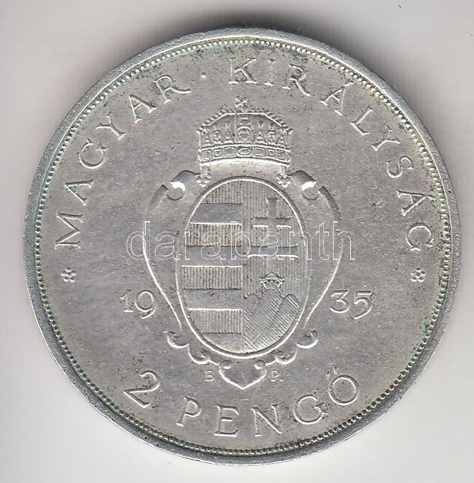 1935. 2P Ag "Pázmány" T:2 https://www.darabanth.com/de/187-Fernauktion/187.0/Numismatik/Ungarische-Munzen~8/1935-2P-Ag-Pazmany-T2~II692247