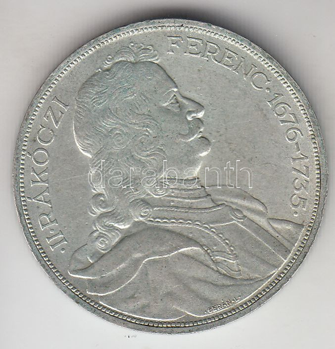 1935. 2P Ag "Rákóczi" T:2- https://www.darabanth.com/de/187-Fernauktion/187.0/Numismatik/Ungarische-Munzen~8/1935-2P-Ag-Rakoczi-T2-~II692206