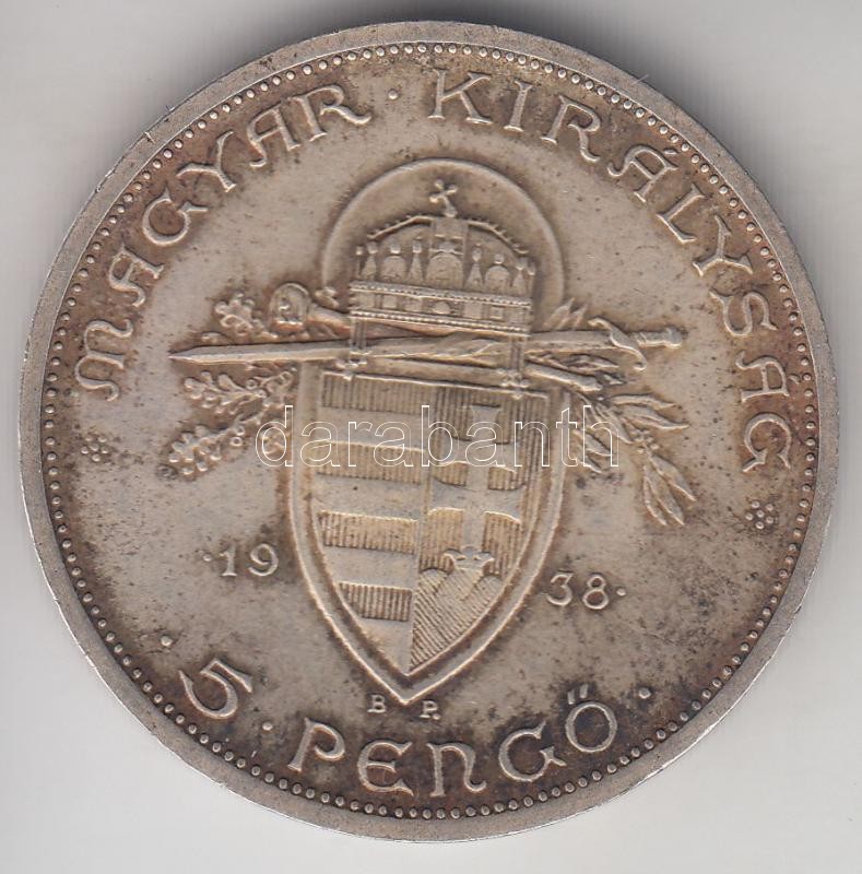 1938. 5P Ag "Szent István" T:2 patina https://www.darabanth.com/de/187-Fernauktion/187.0/Numismatik/Ungarische-Munzen~8/1938-5P-Ag-Szent-Istvan-T2-patina-3Cbr3E~II690952