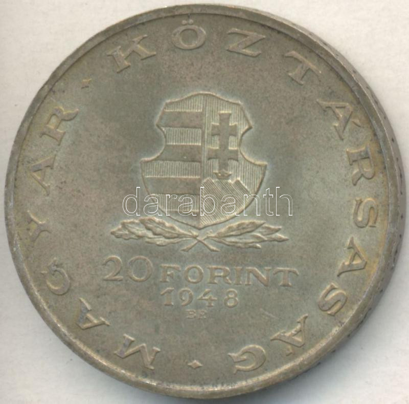 1948. 20Ft Ag "Táncsics" T:2 https://www.darabanth.com/de/187-Fernauktion/187.0/Numismatik/Ungarische-Munzen~8/1948-20Ft-Ag-Tancsics-T2~II692878
