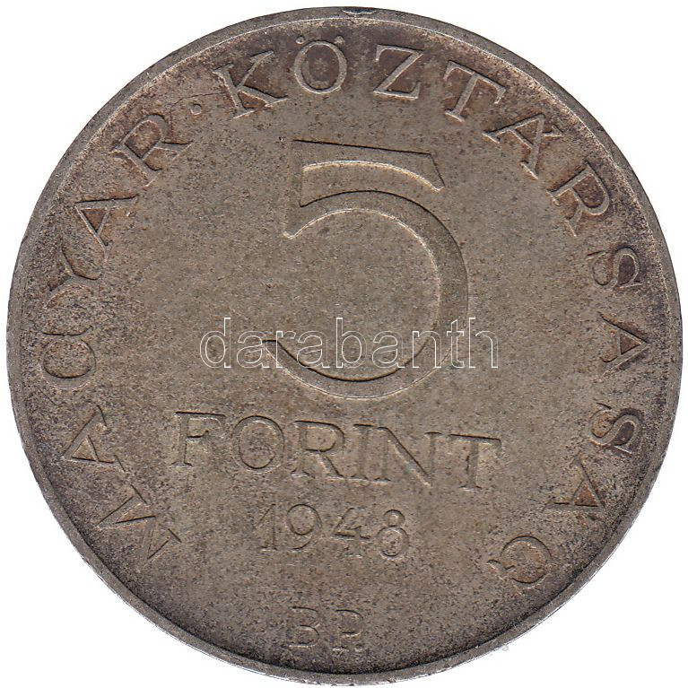 1948. 5Ft Ag "Petőfi" T:2 https://www.darabanth.com/de/187-Fernauktion/187.0/Numismatik/Ungarische-Munzen~8/1948-5Ft-Ag-Petofi-T2-3Cbr3E~II690201