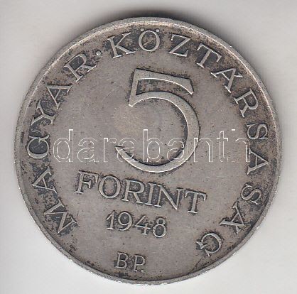 1948. 5Ft Ag "Petőfi" T:2 https://www.darabanth.com/de/187-Fernauktion/187.0/Numismatik/Ungarische-Munzen~8/1948-5Ft-Ag-Petofi-T2~II691411