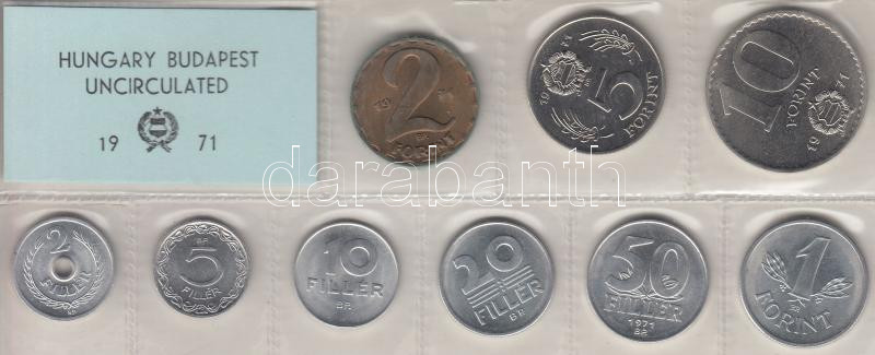 1971. 2f-10Ft 9db klf érmés forgalmi sor fóliatokban T:1 https://www.darabanth.com/de/187-Fernauktion/187.0/Numismatik/Ungarische-Munzen~8/1971-2f-10Ft-9db-klf-ermes-forgalmi-sor-foliatokban-T1~II689162