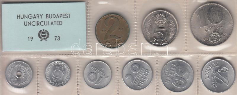 1973. 2f-10Ft 9db klf érmés forgalmi sor fóliatokban T:1 https://www.darabanth.com/de/187-Fernauktion/187.0/Numismatik/Ungarische-Munzen~8/1973-2f-10Ft-9db-klf-ermes-forgalmi-sor-foliatokban-T1~II689161