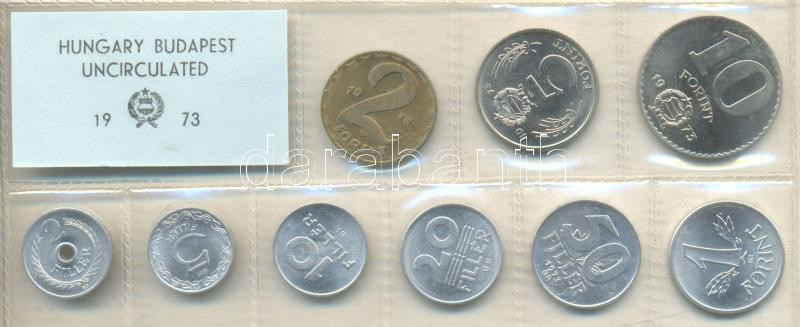 1973. 2f-10Ft 9db klf érmés forgalmi sor fóliatokban T:1 https://www.darabanth.com/de/187-Fernauktion/187.0/Numismatik/Ungarische-Munzen~8/1973-2f-10Ft-9db-klf-ermes-forgalmi-sor-foliatokban-T1~II693354
