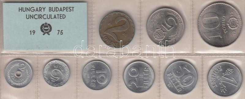1975. 2f-10Ft 9db klf érmés forgalmi sor fóliatokban T:1 https://www.darabanth.com/de/187-Fernauktion/187.0/Numismatik/Ungarische-Munzen~8/1975-2f-10Ft-9db-klf-ermes-forgalmi-sor-foliatokban-T1~II689047