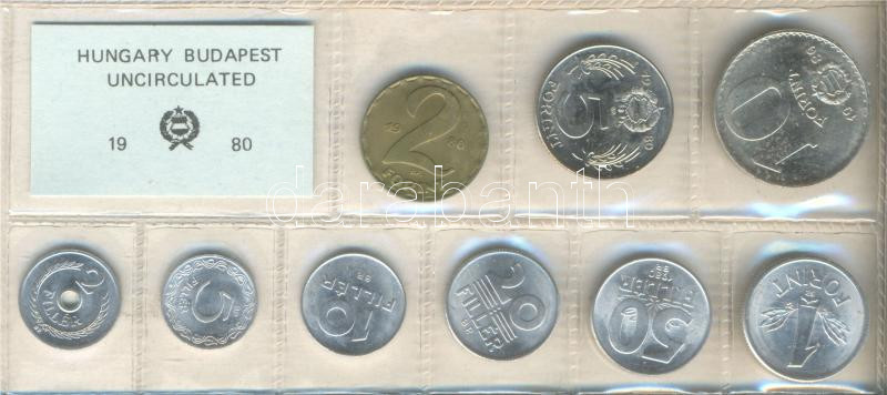 1980. 2f-10Ft 9db klf érmés forgalmi sor fóliatokban T:1 https://www.darabanth.com/de/187-Fernauktion/187.0/Numismatik/Ungarische-Munzen~8/1980-2f-10Ft-9db-klf-ermes-forgalmi-sor-foliatokban-T1~II693315
