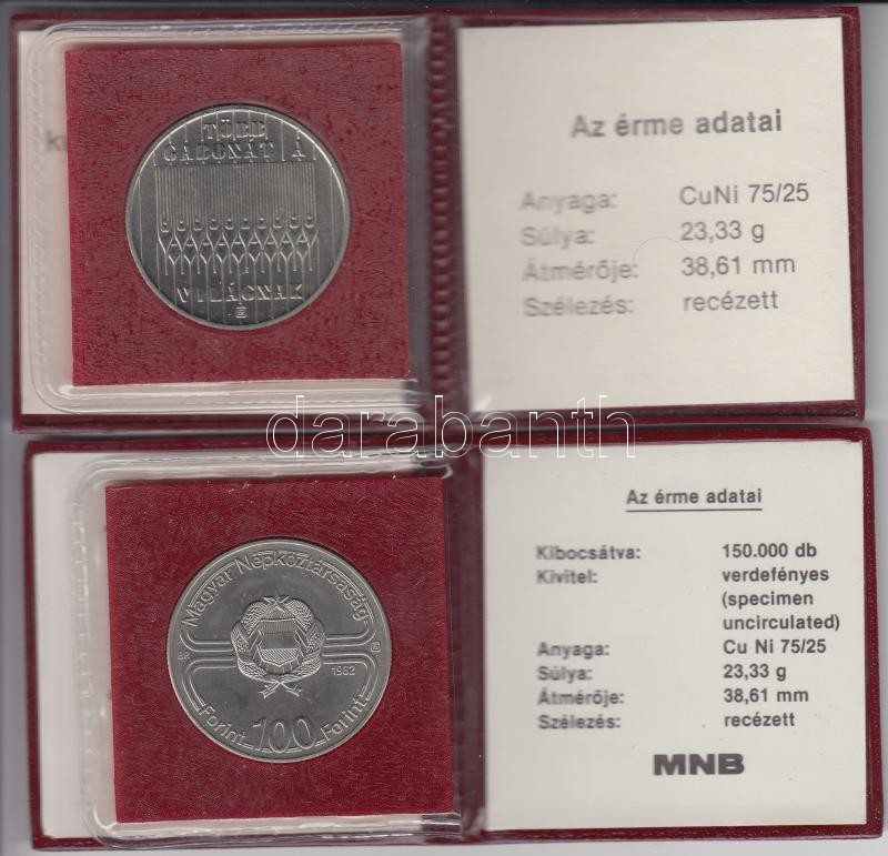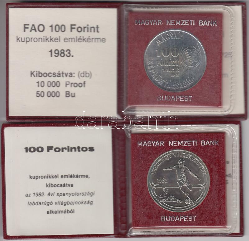 1982. 100Ft "Labdarúgó VB" + 1983. 100Ft "FAO" T:BU Eredeti tokban, ta... https://www.darabanth.com/de/187-Fernauktion/187.0/Numismatik/Ungarische-Munzen~8/1982-100Ft-Labdarugo-VB-plus-1983-100Ft-FAO-TBU-Eredeti-tokban-tanusitvannyal~II691376