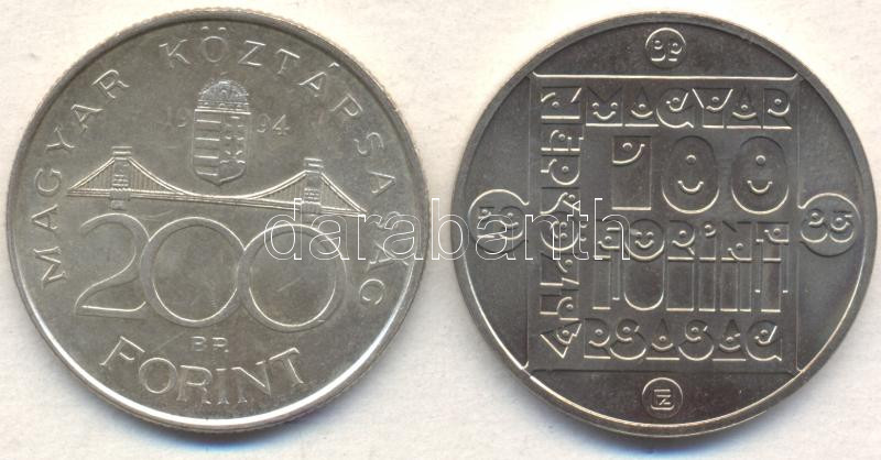 Beschreibung: 1985. 100Ft "Természetvédelem-vidra" T:BU + 1994. 200Ft Ag "Deák" T:2