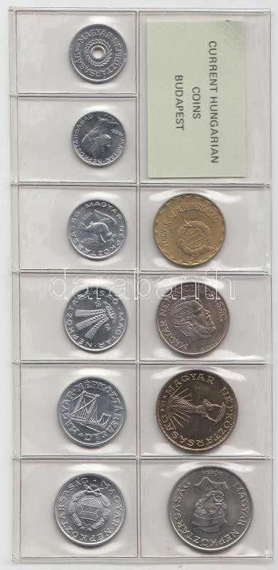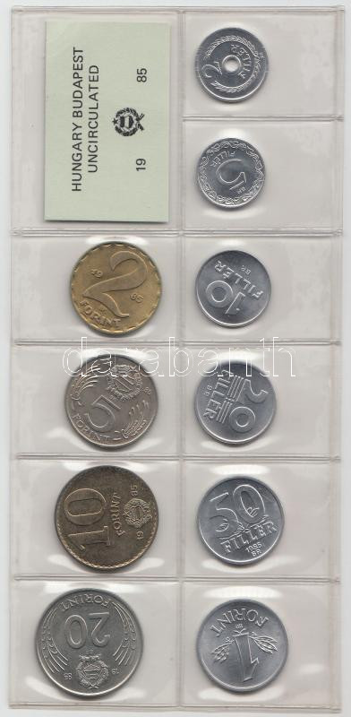 1985. 2f-20Ft 10db klf érmés forgalmi sor fóliatokban T:1 https://www.darabanth.com/de/187-Fernauktion/187.0/Numismatik/Ungarische-Munzen~8/1985-2f-20Ft-10db-klf-ermes-forgalmi-sor-foliatokban-T1~II693369