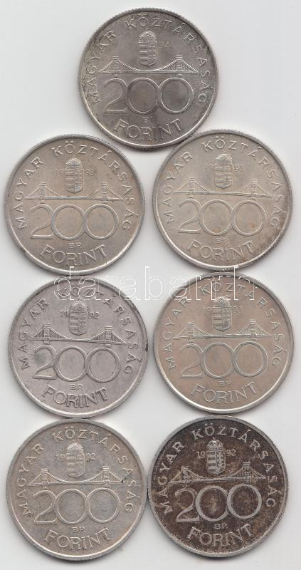 1992-1994. 200Ft Ag "MNB" + "Deák" (7x) T:2,2- https://www.darabanth.com/de/187-Fernauktion/187.0/Numismatik/Ungarische-Munzen~8/1992-1994-200Ft-Ag-MNB-plus-Deak-7x-T2-2-~II691134