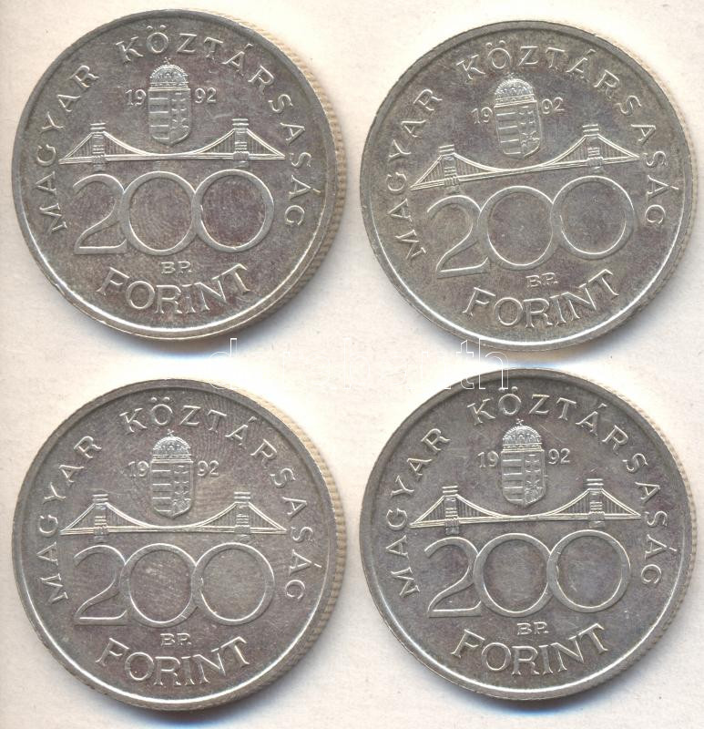 1992. 200Ft Ag "MNB" (4x) T:2 https://www.darabanth.com/de/187-Fernauktion/187.0/Numismatik/Ungarische-Munzen~8/1992-200Ft-Ag-MNB-4x-T2~II690697