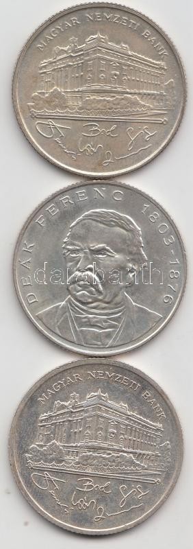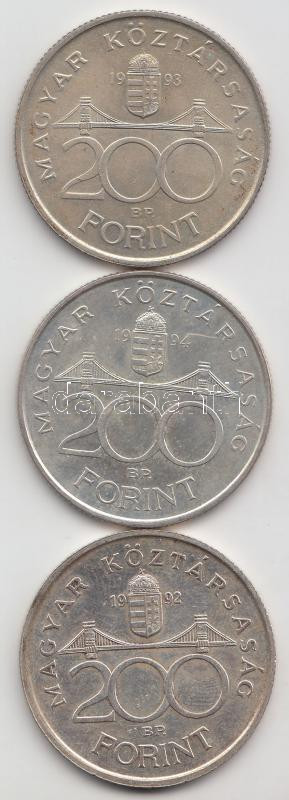 1992-94. 200Ft Ag "MNB" + "Deák" (3x) T:2 https://www.darabanth.com/de/187-Fernauktion/187.0/Numismatik/Ungarische-Munzen~8/1992-94-200Ft-Ag-MNB-plus-Deak-3x-T2~II690971