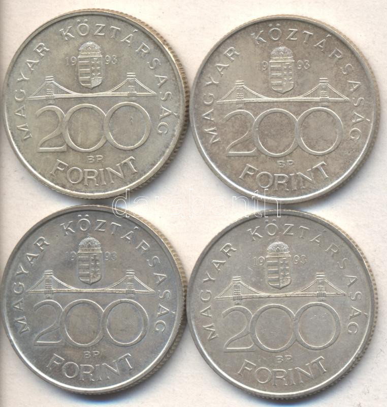 1993. 200Ft Ag "MNB" (5x) T:2 https://www.darabanth.com/de/187-Fernauktion/187.0/Numismatik/Ungarische-Munzen~8/1993-200Ft-Ag-MNB-5x-T2~II690706