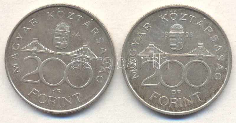 1993-94. 200Ft Ag "MNB" + "Deák" T:2 https://www.darabanth.com/de/187-Fernauktion/187.0/Numismatik/Ungarische-Munzen~8/1993-94-200Ft-Ag-MNB-plus-Deak-T2~II686802