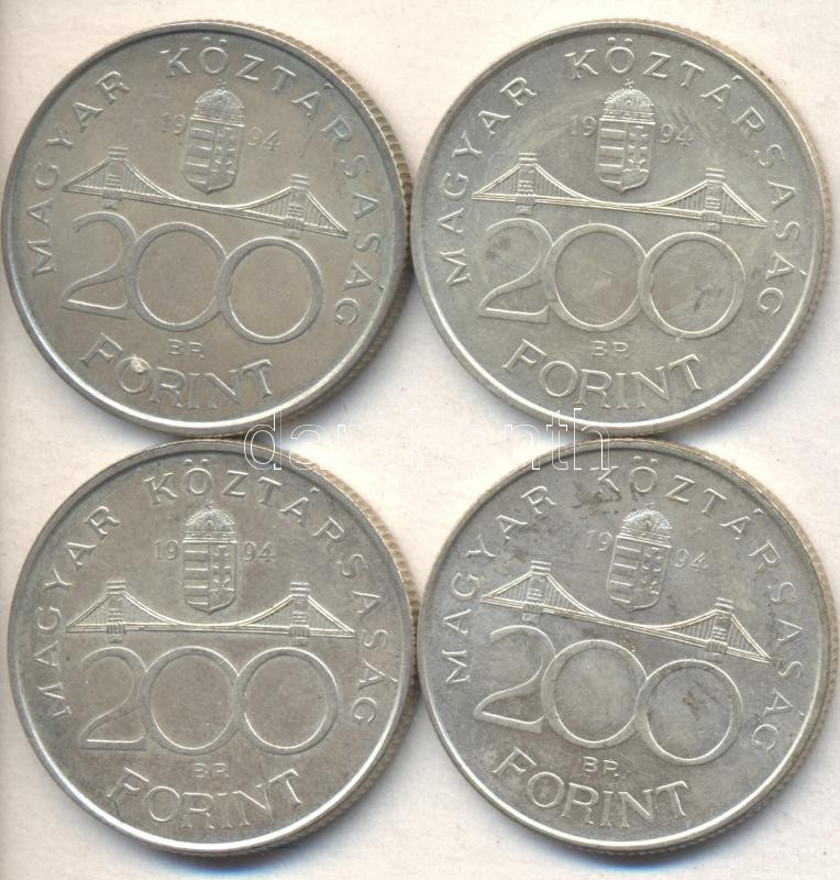 1994. 200Ft Ag "Deák" (4x) T:2 https://www.darabanth.com/de/187-Fernauktion/187.0/Numismatik/Ungarische-Munzen~8/1994-200Ft-Ag-Deak-4x-T2~II690703