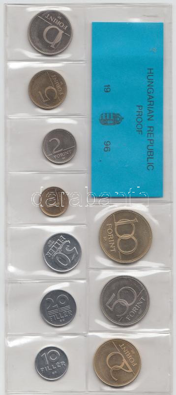 1996. 10f-100Ft 10klf db, forgalmi szett fóliatokban T:BU https://www.darabanth.com/de/187-Fernauktion/187.0/Numismatik/Ungarische-Munzen~8/1996-10f-100Ft-10klf-db-forgalmi-szett-foliatokban-TBU~II693951