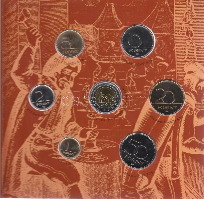 2001. 1Ft-100Ft 7klf névértékből álló forgalmi éremszett "Ezeréves a m... https://www.darabanth.com/de/187-Fernauktion/187.0/Numismatik/Ungarische-Munzen~8/2001-1Ft-100Ft-7klf-nevertekbol-allo-forgalmi-eremszett-Ezereves-a-magyar-penzveres-TB~II688764