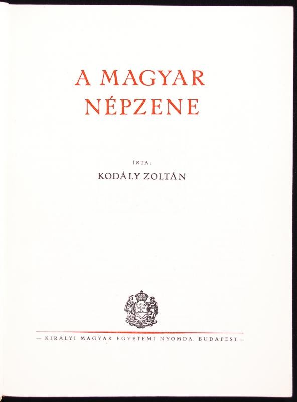 Kodály Zoltán: A magyar népzene. Budapest, 1937, Királyi Magyar Egyete... https://www.darabanth.com/de/188-Fernauktion/188.0/Andere-Sammelgebiete/Bucher-Musik~15000030/Kodaly-Zoltan-A-magyar-nepzene-Budapest-1937-Kiralyi-Magyar-Egyetemi-Nyomda-Kiadoi-papirk~II699119