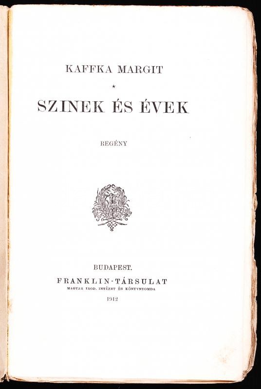 Kaffka Margit: Színek és évek. Regény. Első kiadás. Budapest, 1912, Fr... https://www.darabanth.com/de/188-Fernauktion/188.0/Andere-Sammelgebiete/Bucher-Sonstige-Raritaten~15000040/Kaffka-Margit-Szinek-es-evek-Regeny-Elso-kiadas-Budapest-1912-Franklin--tarsulat-Kiad~II697527