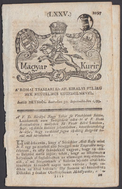 1789 Magyar Kurir. (Szerk. Szacsvay Sándor) LXIII. szám (aug. 19.), pp... https://www.darabanth.com/de/188-Fernauktion/188.0/Andere-Sammelgebiete/Drucksachen~15000025/1789-Magyar-Kurir-Szerk-Szacsvay-Sandor-LXIII-szam-aug-19-pp-914-928~II699589