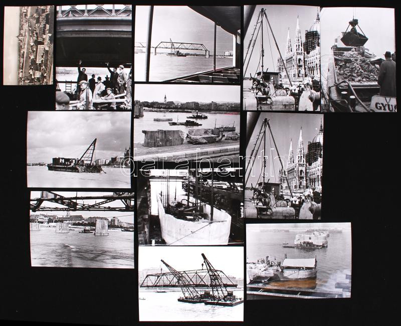 Beschreibung: 1960 11 db fotó a Kossuth-híd bontásáról + 1 db képeslap a hídról, 18x13cm