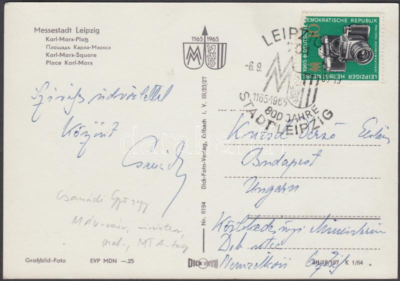 1965 Csanády György MÁV vezér sajét kézzel írt képeslapja https://www.darabanth.com/de/188-Fernauktion/188.0/Andere-Sammelgebiete/Signatur~15000016/1965-Csanady-Gyorgy-MAV-vezer-sajet-kezzel-irt-kepeslapja~II703281