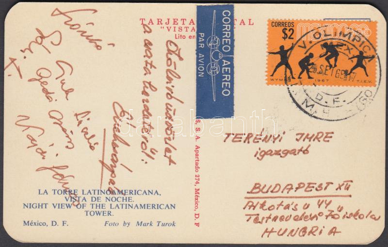 1968 A magyar olimpiai ökölvívó csapat több tagja által aláírt képeslap: Szántó, Gáti, Kajdi stb /