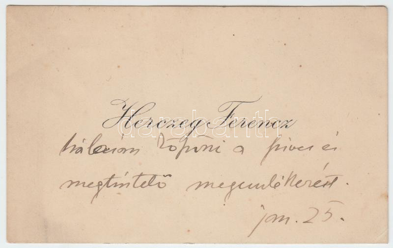 cca 1920 Herczeg Ferenc névjegye az író saját kezű írásával https://www.darabanth.com/de/188-Fernauktion/188.0/Andere-Sammelgebiete/Signatur~15000016/cca-1920-Herczeg-Ferenc-nevjegye-az-iro-sajat-kezu-irasaval~II698077