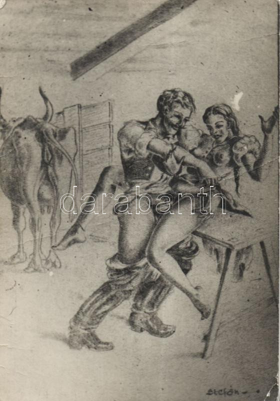 Beschreibung: Humorous, pornographic postcard from the 1940s s: Stefán (fa)