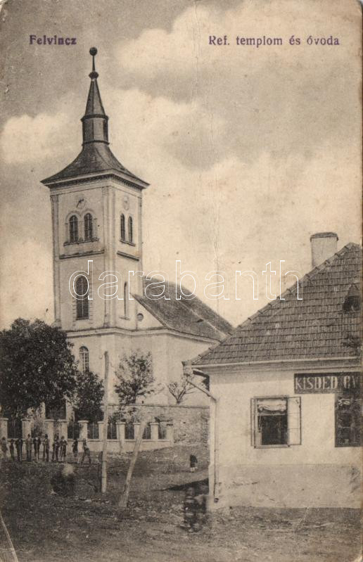 Felvinc Calvinist church, kindergarten (fl) https://www.darabanth.com/de/188-Fernauktion/188.0/Ansichtskarten/Siebenburgen~4000006/Felvinc-Calvinist-church-kindergarten-fl~II693999