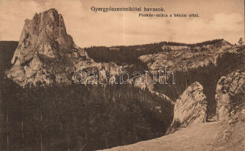 Gyergyószentmiklósi havasok, Puskás-szikla, Békási-út (Rb) https://www.darabanth.com/de/188-Fernauktion/188.0/Ansichtskarten/Siebenburgen~4000006/Gyergyoszentmiklosi-havasok-Puskas-szikla-Bekasi-ut-Rb~II701807