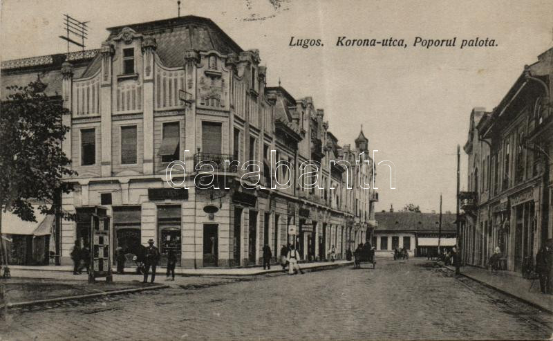 Lugos Korona utca, Poporul palota, gyógyszertár / street, palace, phar... https://www.darabanth.com/de/188-Fernauktion/188.0/Ansichtskarten/Siebenburgen~4000006/Lugos-Korona-utca-Poporul-palota-gyogyszertar-street-palace-pharmacy~II702180