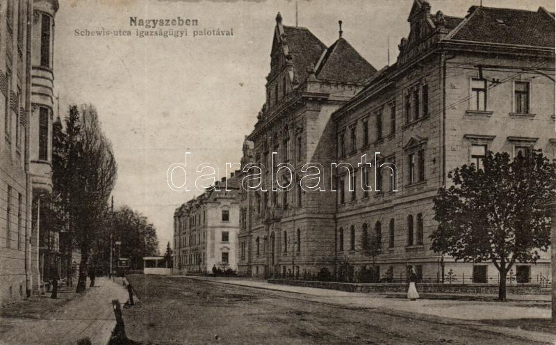 Nagyszeben Schewis street, Palace of Justice (fl) https://www.darabanth.com/de/188-Fernauktion/188.0/Ansichtskarten/Siebenburgen~4000006/Nagyszeben-Schewis-street-Palace-of-Justice-fl~II697238