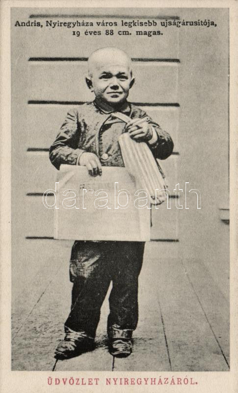 Nyíregyháza, Andris, Nyíregyháza legkisebb újságárusítója 19 éves 88 c... https://www.darabanth.com/de/188-Fernauktion/188.0/Ansichtskarten/Ungarn~4000005/Nyiregyhaza-Andris-Nyiregyhaza-legkisebb-ujsagarusitoja-19-eves-88-cm-magas~II700845