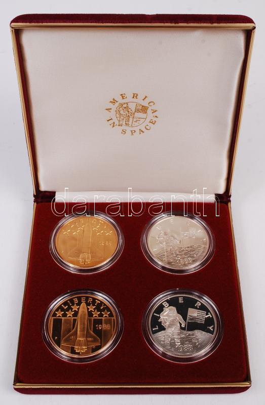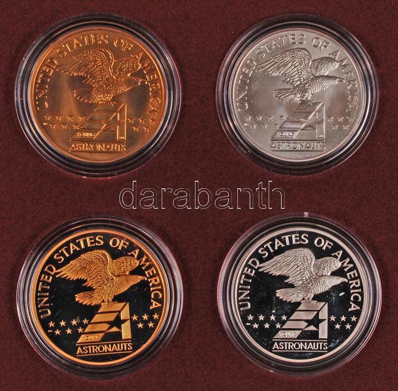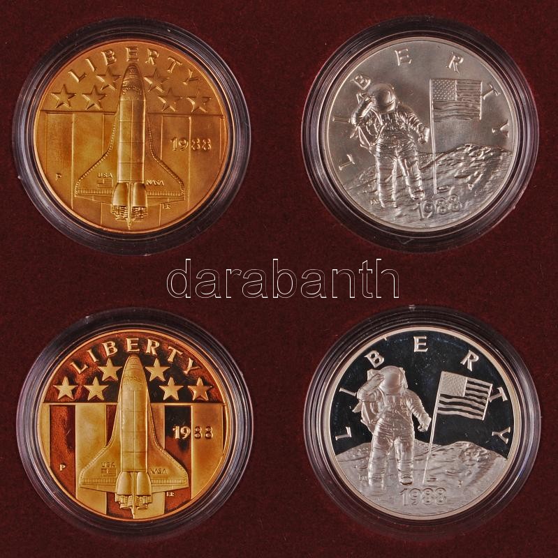 Amerikai Egyesült Államok 1988. "Amerika az űrben - Fiatal asztronauták" ezüst (26.7g/0.9/38mm) (2x) + bronz (38mm) (2x) emlékérem szettben T:PP