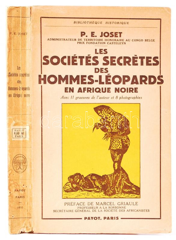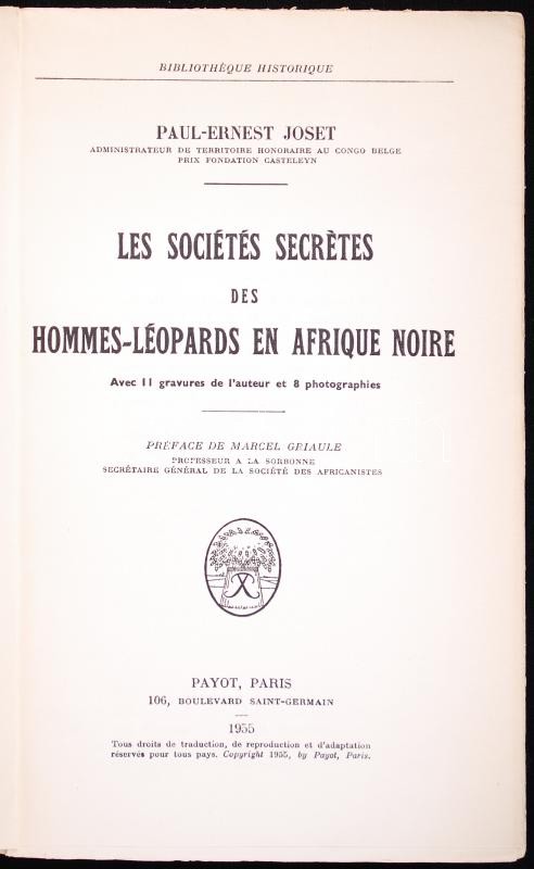Paul-Ernest Joset: Les Sociétés Secretes des hommes-léopards en Afrique noire. Avec 11 gravures de l'auteur et 8 photographies. Paris, 1955, Payot. Kiadói, illusztrált papírkötésben, illusztrációkkal, részben felvágatlan /