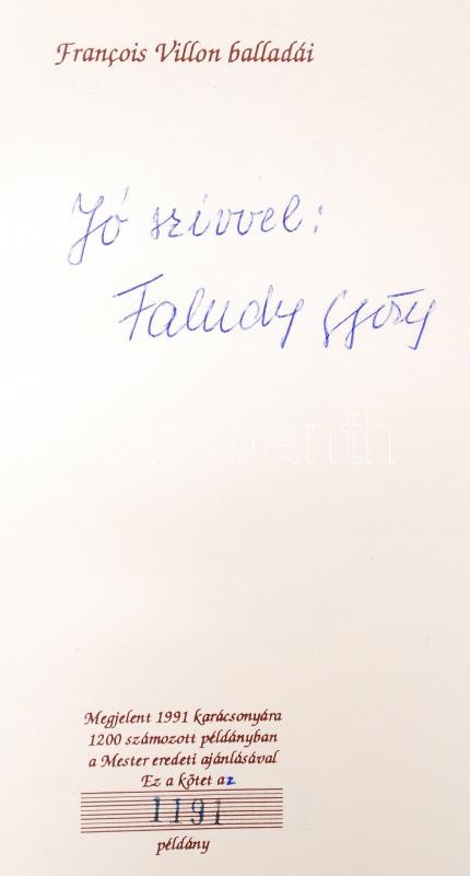 Faludy György: Francois Villon balladái. Dedikált! Bp., 1991. Magyar V... https://www.darabanth.com/de/189-Fernauktion/189.0/Andere-Sammelgebiete/Bucher-Sonstige-Raritaten~4000039/Faludy-Gyorgy-Francois-Villon-balladai-Dedikalt-Bp-1991-Magyar-Vilag-Aranyozott-egeszbo~II706097