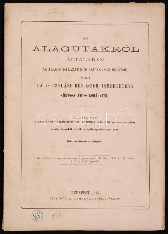 Könyves Tóth Mihály: Az alagutakról általában... három darab rajzlappa... https://www.darabanth.com/de/189-Fernauktion/189.0/Andere-Sammelgebiete/Bucher-Wissenschaften~4000027/Konyves-Toth-Mihaly-Az-alagutakrol-altalaban-harom-darab-rajzlappal-Bp-1875-Athenaeum~II709977