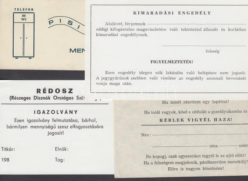 cca 1980 4 db humoros kocsmai igazolvány https://www.darabanth.com/de/189-Fernauktion/189.0/Andere-Sammelgebiete/Dokument~4000014/cca-1980-4-db-humoros-kocsmai-igazolvany~II709059