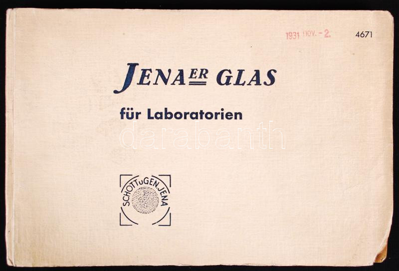 1931 Jenaer Glas für Laboratorien. Jénai orvosiüveg-katalógus https://www.darabanth.com/de/189-Fernauktion/189.0/Andere-Sammelgebiete/Drucksachen~4000025/1931-Jenaer-Glas-fur-Laboratorien-Jenai-orvosiuveg-katalogus~II708527