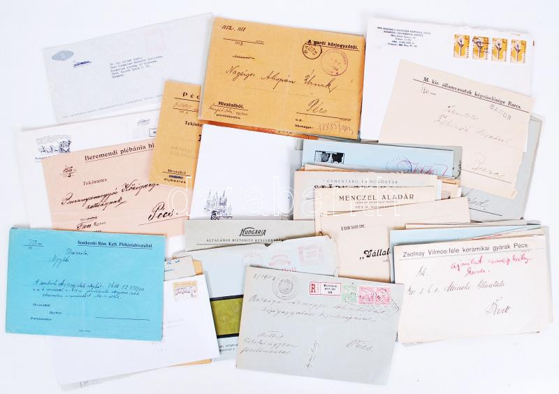 Beschreibung: 63 db nagyrészt háború előtti különböző állami intézmények által nyomtatott és reklámos céges boríték.