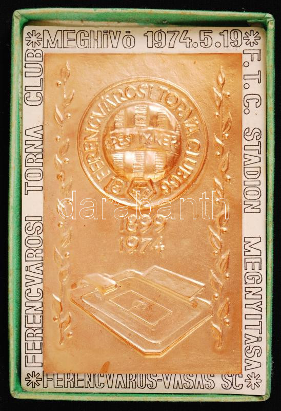 1974 FTC pályaavató mérkőzésére készített díszplakett eredeti díszdobo... https://www.darabanth.com/de/189-Fernauktion/189.0/Andere-Sammelgebiete/Flohmarkt~4000131/1974-FTC-palyaavato-merkozesere-keszitett-diszplakett-eredeti-diszdobozban-10x15-cm~II706173