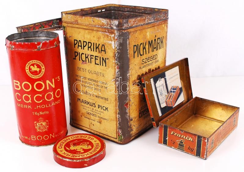3db reklámos fémdoboz, különböző méretben, kopottas állapotban. https://www.darabanth.com/de/189-Fernauktion/189.0/Andere-Sammelgebiete/Flohmarkt~4000131/3db-reklamos-femdoboz-kulonbozo-meretben-kopottas-allapotban~II705273