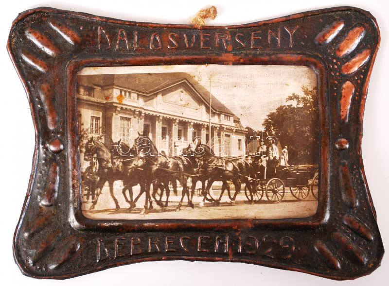 Beschreibung: "Dalosverseny Debrecen" feliratú réz fényképtartó, korabeli fotóval, 18×14 cm