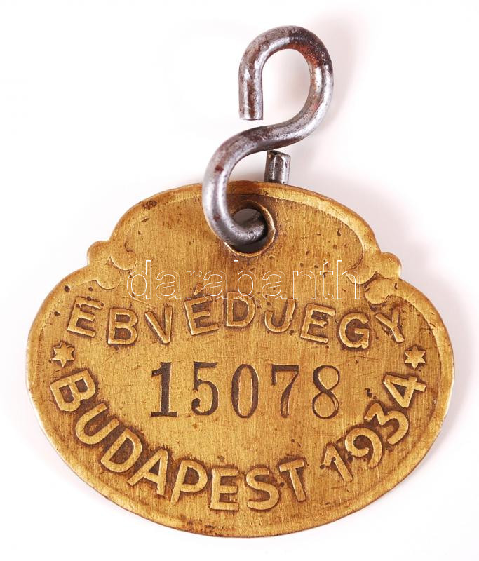 "Ebvédjegy Budapest 1934 - 15078", réz biléta fém függővel https://www.darabanth.com/de/189-Fernauktion/189.0/Andere-Sammelgebiete/Flohmarkt~4000131/Ebvedjegy-Budapest-1934--15078-rez-bileta-fem-fuggovel~II709846