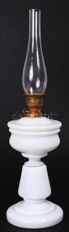 Beschreibung: Szakított tejüveg petróleumlámpa burával /