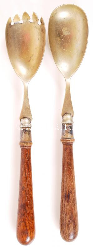Beschreibung: cca 1900 Fa nyelű, alpakka salátaszedő szett /