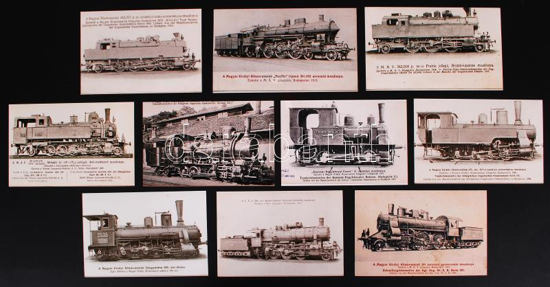 Beschreibung: 10db fotómásolat MÁV-gőzmozdonyokról, klf méretben /